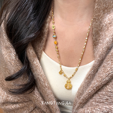 天然淡水珍珠项链编绳万能扣项链毛衣链海蓝宝锁骨链女翡翠吊坠绳
