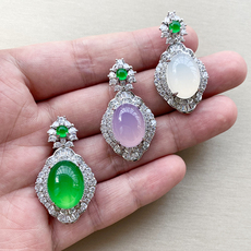 天然冰种玉髓吊坠女镶嵌银色宝石挂件粉紫翡翠色玛瑙项链子挂坠子