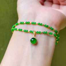 天然缅甸A货翡翠高冰透正阳绿翡翠4mm精致爆款小米珠三圈手链项链