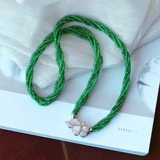 天然绿色玉髓玛瑙串珠项链配饰女新中式国风长款翡翠碧玉色锁骨链