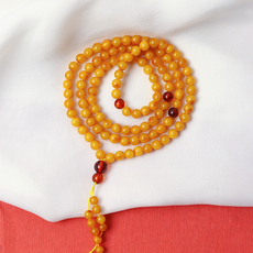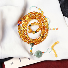天然琥珀蜜蜡圆珠手串108颗项链男款 正品俄料鸡油黄桶珠手链女士