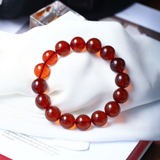 血珀手串男女天然酒红色琥珀蜜蜡文玩佛珠佛家七宝转运珠念珠手链