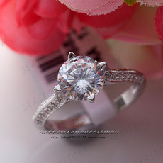 正品莫桑石钻戒1克拉S925纯银戒指女仿真钻石求婚结婚送女友礼物