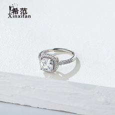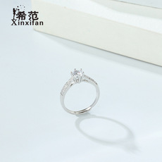 925纯银克拉六爪钻戒指女生简约浪漫仿真钻戒求婚结婚指环送老婆