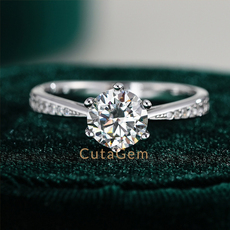 正品D色莫桑石钻戒1克拉S925纯银情侣对戒轻奢求婚结婚戒指送女友