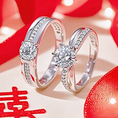 莫桑石钻戒1克拉纯银情侣对戒轻奢仿真求婚结婚戒指送女友礼盒装