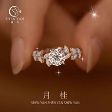 新款正品莫桑石钻戒1克拉纯银月桂结婚求婚生日礼物戒指送女友
