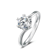 进口莫桑石钻戒女经典四爪戒指925纯银AU750铂金结婚求婚简约时尚