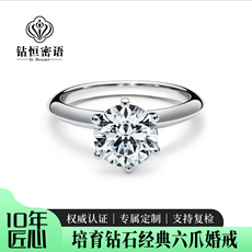 DEINO黛诺钻石戒指女一克拉人工培育钻戒圆形六爪河南订婚结婚
