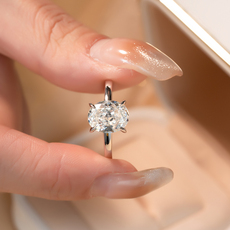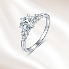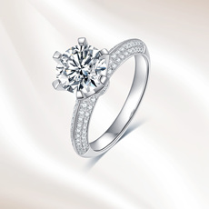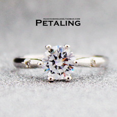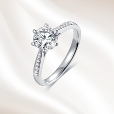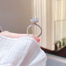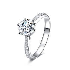 莫桑石钻戒女经典六爪戒指925纯银镀18K白金结婚仿真钻戒时尚饰品