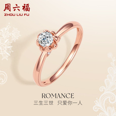 T周六福18K金钻石戒指玫瑰金璀璨求婚结婚彩金四爪单钻钻戒送女友
