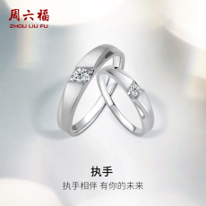 周六福白18k金钻石戒指男戒女璀璨结婚婚戒钻戒天然真钻情侣对戒