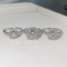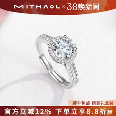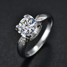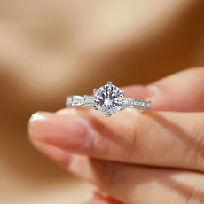 饰品欧美时尚硞石镶钻925镀银戒指少女简约甜美求婚订婚结婚钻戒