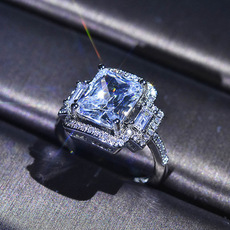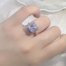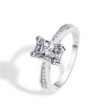 欧美时尚S925镀纯银方形硞石戒指少女简约甜美气质结婚订婚钻戒