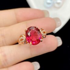 女朋友甜美结婚钻戒简约气质仿真红碧玺宝石硞石镶钻镀玫瑰金戒指