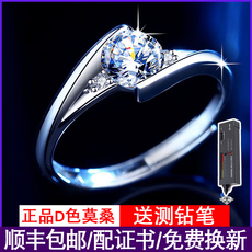 正品D色莫桑石钻戒1克拉纯银求婚结婚戒指女九星款豪华婚戒送女友