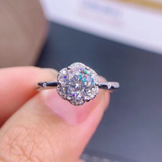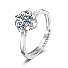 S925镀纯银欧美时尚气质简约花朵硞石镶钻戒指结婚求婚气质钻戒