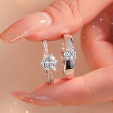 经典六爪方钻圆钻结婚婚礼仪x式莫桑钻假钻戒对戒闭口活口可调节