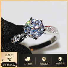 925纯银仿真钻石戒指女镀18k白金假钻戒结婚求婚婚戒婚礼网红高档