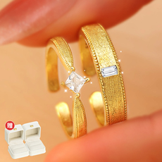 结婚对戒仿真一对订婚假钻戒戒指假黄金开口指环情侣对戒男女轻奢
