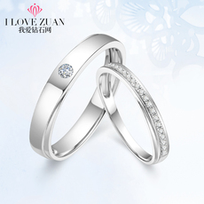 我爱钻石网情侣结婚对戒18K金钻戒女天然真钻正品订婚戒指男一对