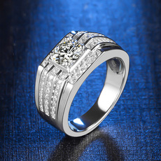 新款莫桑石钻戒男925纯银镀18K白金PT950铂金戒指结婚送男友礼物
