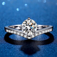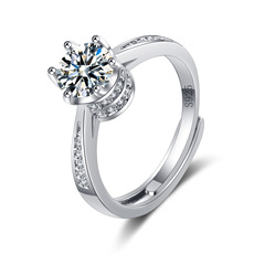 闪耀莫桑石钻戒指女款公主皇冠s925银饰轻奢仿真钻戒订制求婚结婚