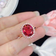 女朋友甜美结婚钻戒椭圆形仿真红碧玺宝石硞石镶钻镀玫瑰金戒指