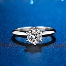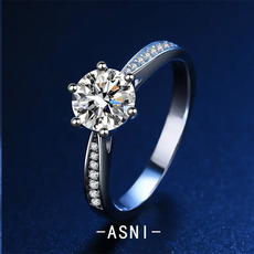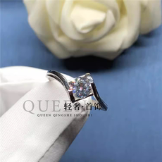 S925镀纯银一克拉硞石甜美戒指少女简约气质钻戒结婚情人节礼物