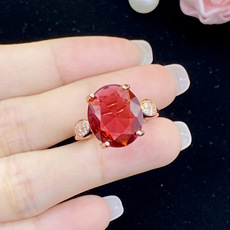 欧美高端珠宝少女简约甜美结婚钻戒椭圆形仿真红碧玺镀玫瑰金戒指