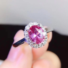 欧美高端珠宝少女简约甜美仿真粉红碧玺椭圆形镀白金戒指结婚钻戒