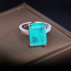 欧美女士高级珠宝结婚气质钻戒仿蓝绿水晶戒指排钻绿石镀白金戒指