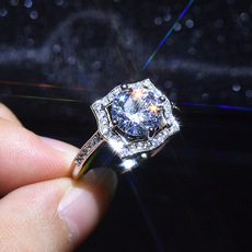 欧美高端珠宝女士10克拉天蓝锆石几何形镀白金戒指结婚钻戒礼物