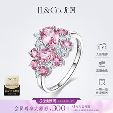 ILCO尤珂 白18K金天然碧玺女戒钻石粉色宝石女戒彩宝项链送礼套装
