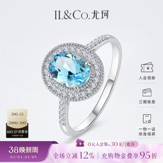 ILCO尤珂「冰蓝鸽子蛋」18K金海蓝宝戒指天然彩宝钻石克拉椭圆戒