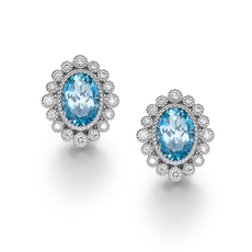 HIVENGI/海梵纪天然海蓝宝石耳钉 18K白金镶嵌钻石彩宝男女
