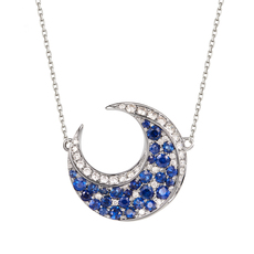 HIVENGI/海梵纪1.2克拉天然蓝宝石项链18K金 彩宝钻石月亮吊坠