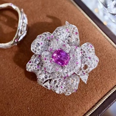 18K金钻石彩宝镶嵌 天然无烧帕帕拉恰戒指/吊坠/胸针三用 花朵款