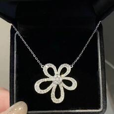 海梵纪珠宝 天然海蓝宝项链18K白金 彩宝雪花钻石吊坠锁骨链定制