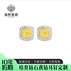 培育钻石黄钻小方糖耳钉IGI裸钻围镶彩钻粉钻蓝钻私人耳饰定制