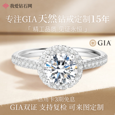 我爱钻石网枕形1克拉钻石戒指女群镶钻戒女1克拉定制gia裸钻南非