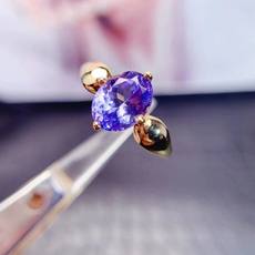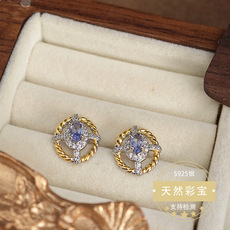 天然坦桑石耳钉银镶嵌天然彩宝耳钉高贵轻奢直播热款