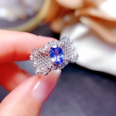 S925银镶天然坦桑石男士戒指时尚颜色漂亮个性气质活口男女均可带