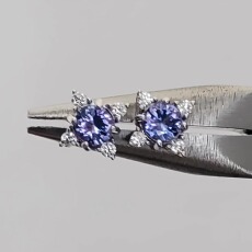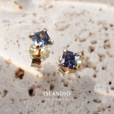 ISLANDIO自制新品坦桑蓝方钻3mm公主切宝石耳钉养耳朵纯银耳饰女