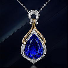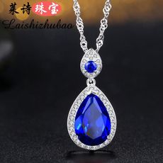 蓝宝石吊坠女日韩纯银镀18k金彩色宝石项坠贵重宝石坦桑石配饰品