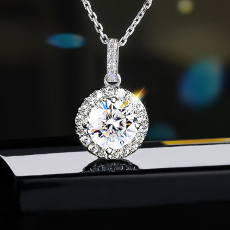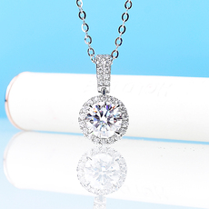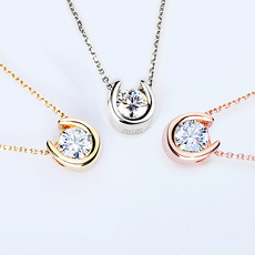 锁爱 圆钻项链钻石吊坠18K金人工培育钻克拉钻石培育钻石颈饰时尚