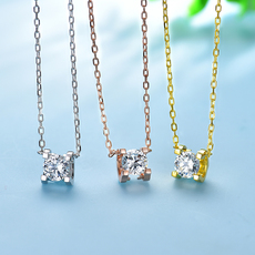 生辰石吊坠18K黄金玫瑰彩金铂金轻奢创意生日礼物4月钻石女项链