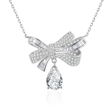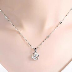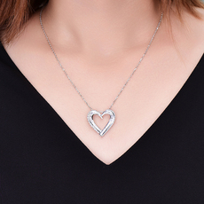 卓蝶珠宝镂空桃心仿钻石吊坠纯银镀白金爱心锁骨链女心形项链新品