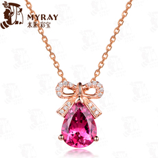 米莱珠宝 1.5克拉天然玫红碧玺吊坠 18k金钻石镶嵌定制项链 女