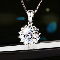 IGI人工培育钻石吊坠18K白金克拉甜美围镶满钻太阳花锁骨项链铂金